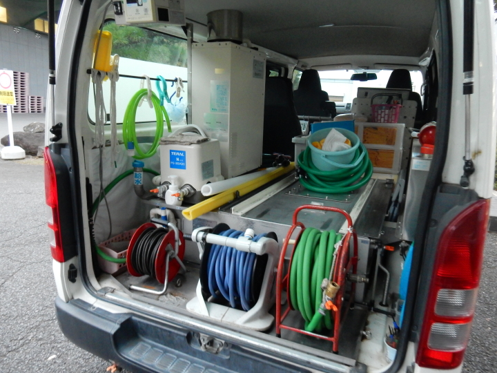 看護師、ケアスタッフ、オペレーターの3人のチーム編成で給湯の調整、湯温の管理ができる訪問入浴専用車でうかがいます。 浴槽を持ち込み、お湯をはり、身体状況(血圧、体温、脈拍など)を確認してから、入浴介助を行います。 入浴前後の看護師による体調のチェックにより、定期的に健康の確認も行うことができます。